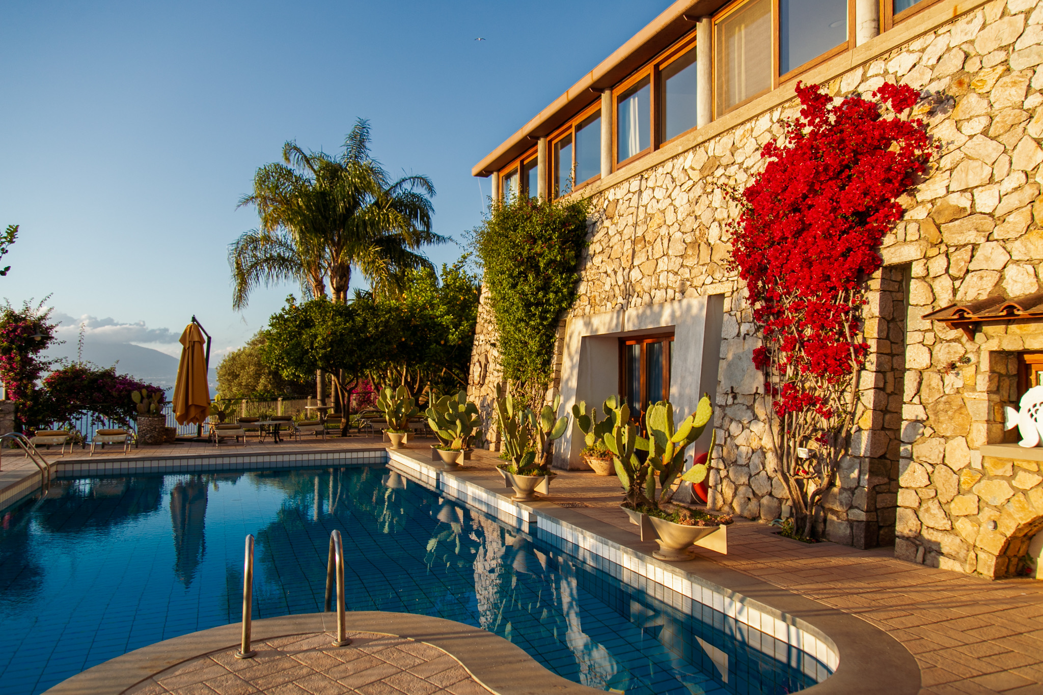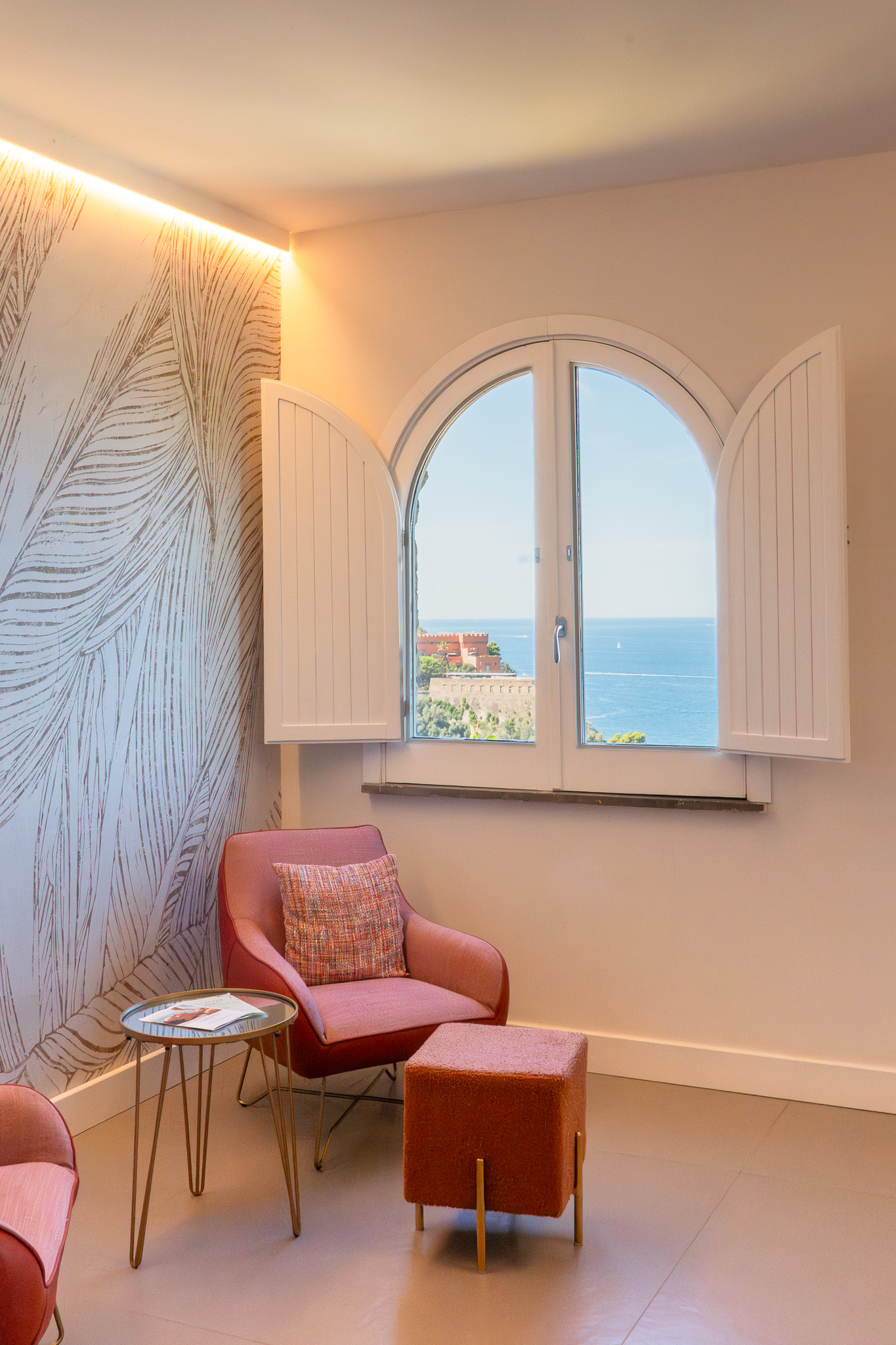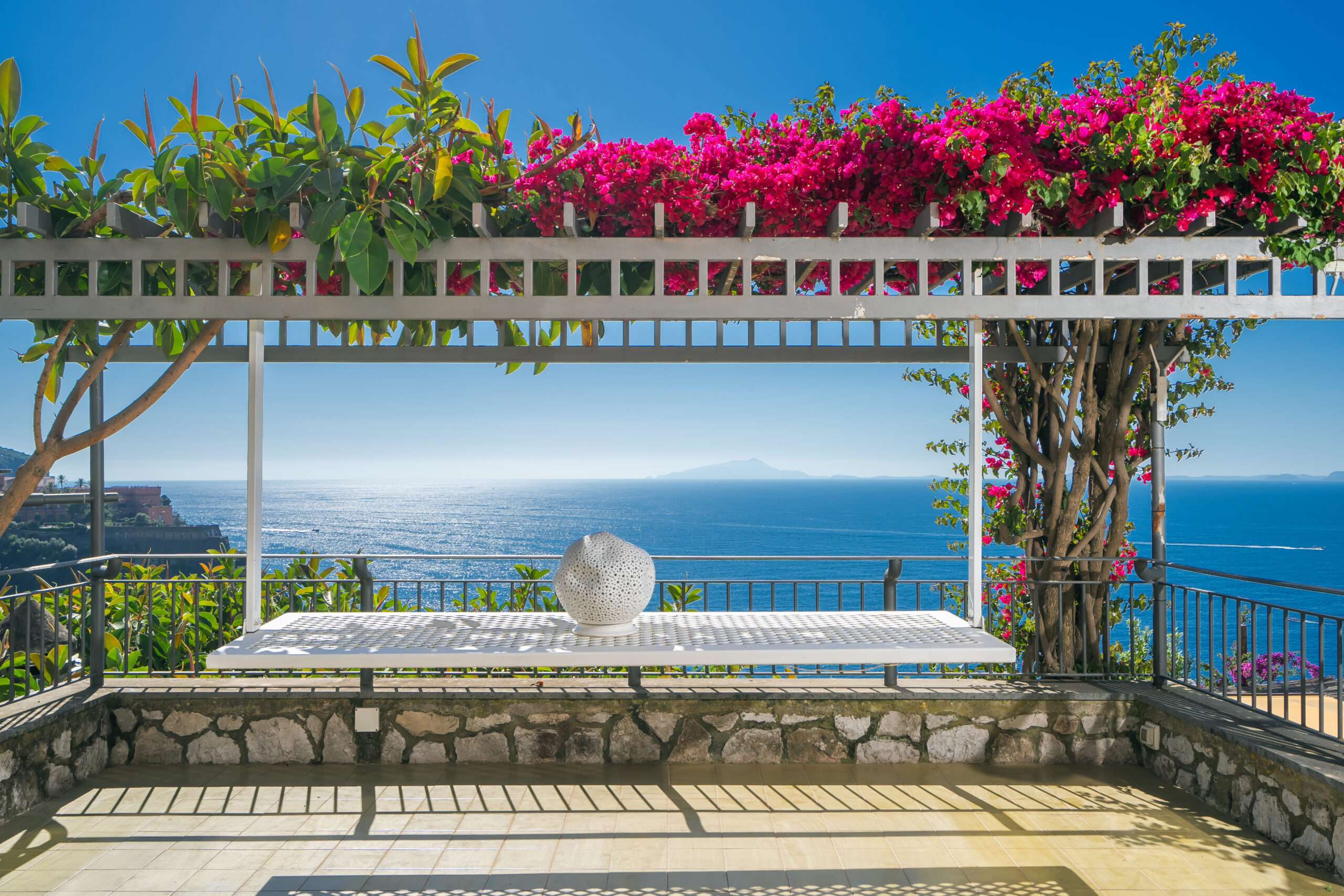 Ambienti dove passato e presente dialogano con eleganza, affacciati sul Castello Giusso, la Marina di Vico e il profilo delle isole di Ischia e Procida. Sale interne raffinate e ampi spazi esterni si fondono in un’atmosfera unica: arredi classici incontrano finiture contemporanee, mentre terrazze e giardini combinano il fascino della cultura tradizionale con soluzioni moderne. Ogni angolo è pensato per far sentire a casa chi cerca autenticità.